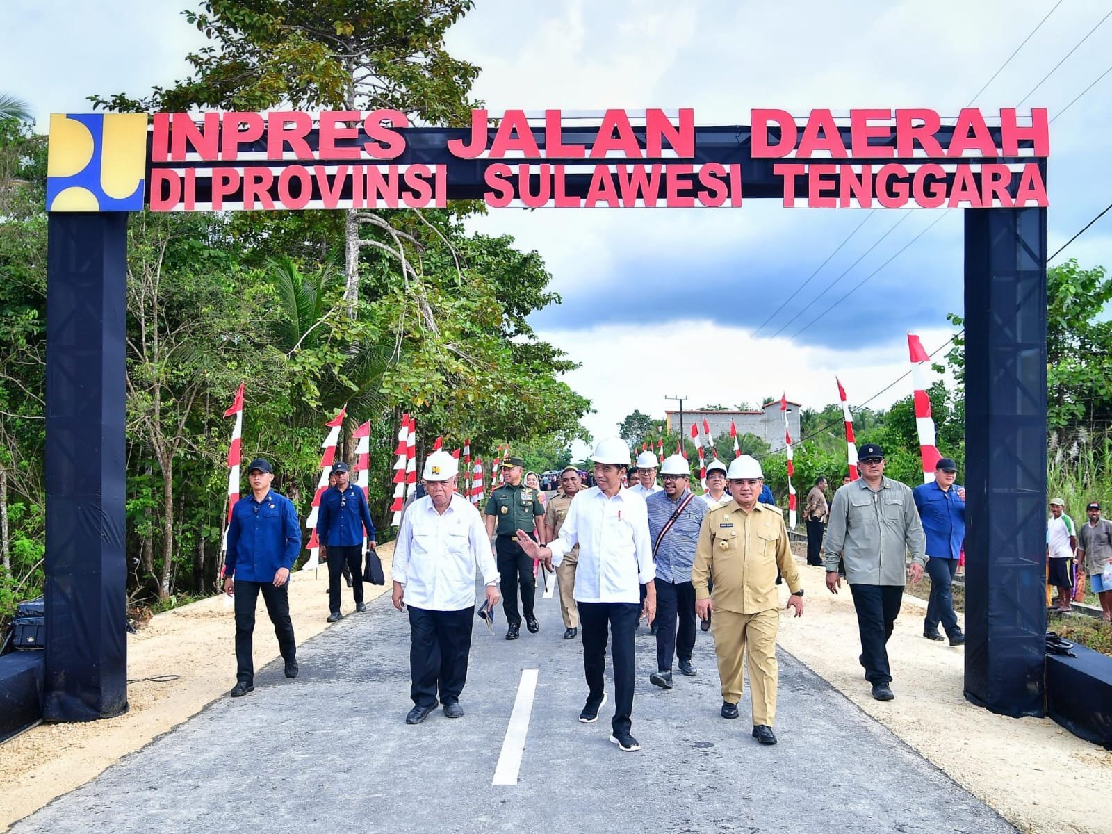 Turut hadir mendampingi dalam rangkaian kegiatan diantaranya Menteri Sekretaris Negara (Mensesneg) Prof. Dr. Pratikno, M.Soc.Sc., Menteri Pekerjaan Umum dan Perumahan Rakyat (PUPR) Dr. (H.C.) Ir. H. Mochamad Basuki Hadimoeljono, M.Sc., Ph.D., Menteri Kesehatan Ir. Budi Gunadi Sadikin, S.Si., CHFC., CLU., Kepala Badan Pangan Nasional Arief Prasetyo Adi, S.T, M.T, Pj. Gubernur Sulawesi Tenggara Andap Budhi Revianto, dan Direktur Utama Perum BULOG Bayu Krisnamurthi.