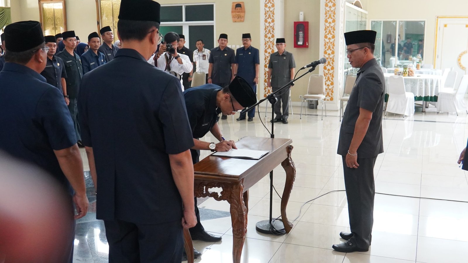 “Selamat kepada para pegawai yang dilantik ke jabatan barunya. Semoga kita semua dapat menjadi ASN yang bangga melayani bangsa, bangga melayani masyarakat, serta bekerja menjalankan kewajiban sesuai dengan nilai dasar berakhlak,” ungkap bupati.