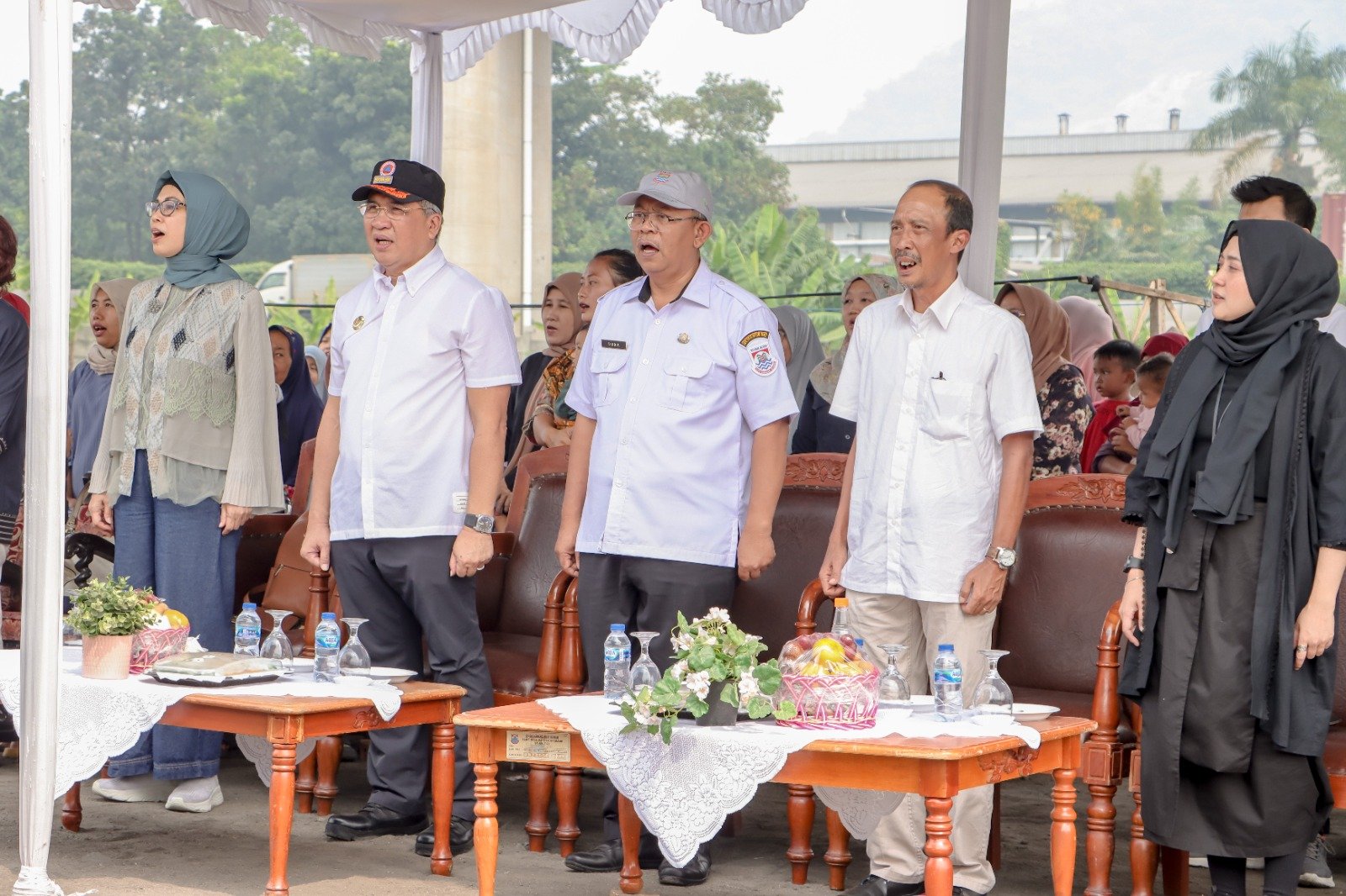 Turut hadir dalam peletakkan batu pertama pembangunan SPALD-T Kepala Dinas Perumahan Dan Kawasan Permukiman Kota Cimahi Endang, Kepala Dinas Arsip Daerah Kota Cimahi Dani Bastian dan Manajer Operasional BRI Juanita Wulandari. (Baghja, Prita)