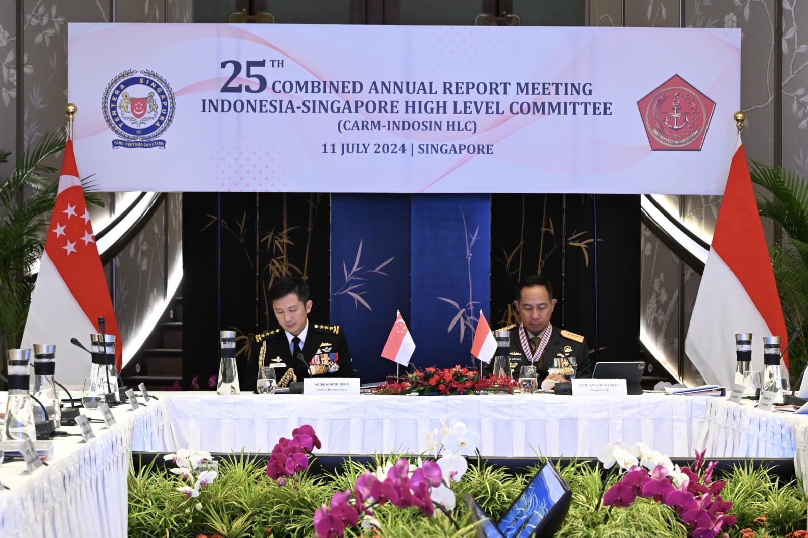 Diawali dengan bertemu Chief Of Defence Forces Singapore Armed Force (CDF SAF) Vice Admiral Aaron Beng dan membahas kerja sama antara TNI dan SAF di masa mendatang, Panglima TNI kemudian melakukan CC dengan Menhan Singapura, CC dengan Perdana Menteri Singapura dan dilanjutkan menjadi Ketua bersama Rapat Laporan Tahunan Gabungan ke-25 – Komite Tingkat Tinggi Indonesia-Singapura (CARM-INDOSIN HLC).