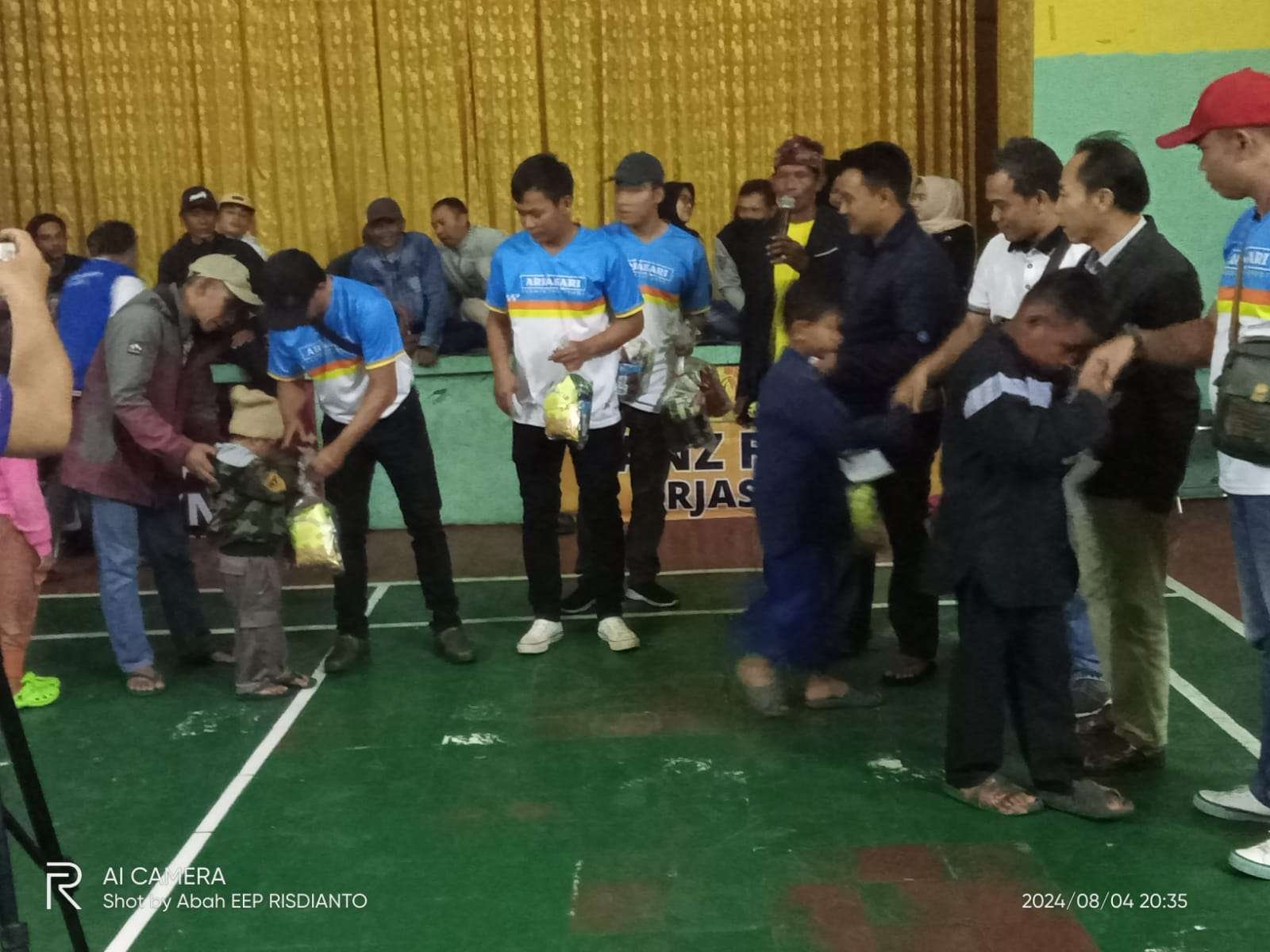 Kab. Bandung, Idisi Online,- Open Turnamen Badminton Sauyunan Cup se Wilayah Kecamatan Arjasari selesai. Panitia menutup acara dengan membagikan santunan kepada anak yatim dan pembagian hadiah untuk pemenang turnamen. Berlangsung di GOR Kepri Arjasari Kabupaten Bandung. Minggu (4/8/2024).