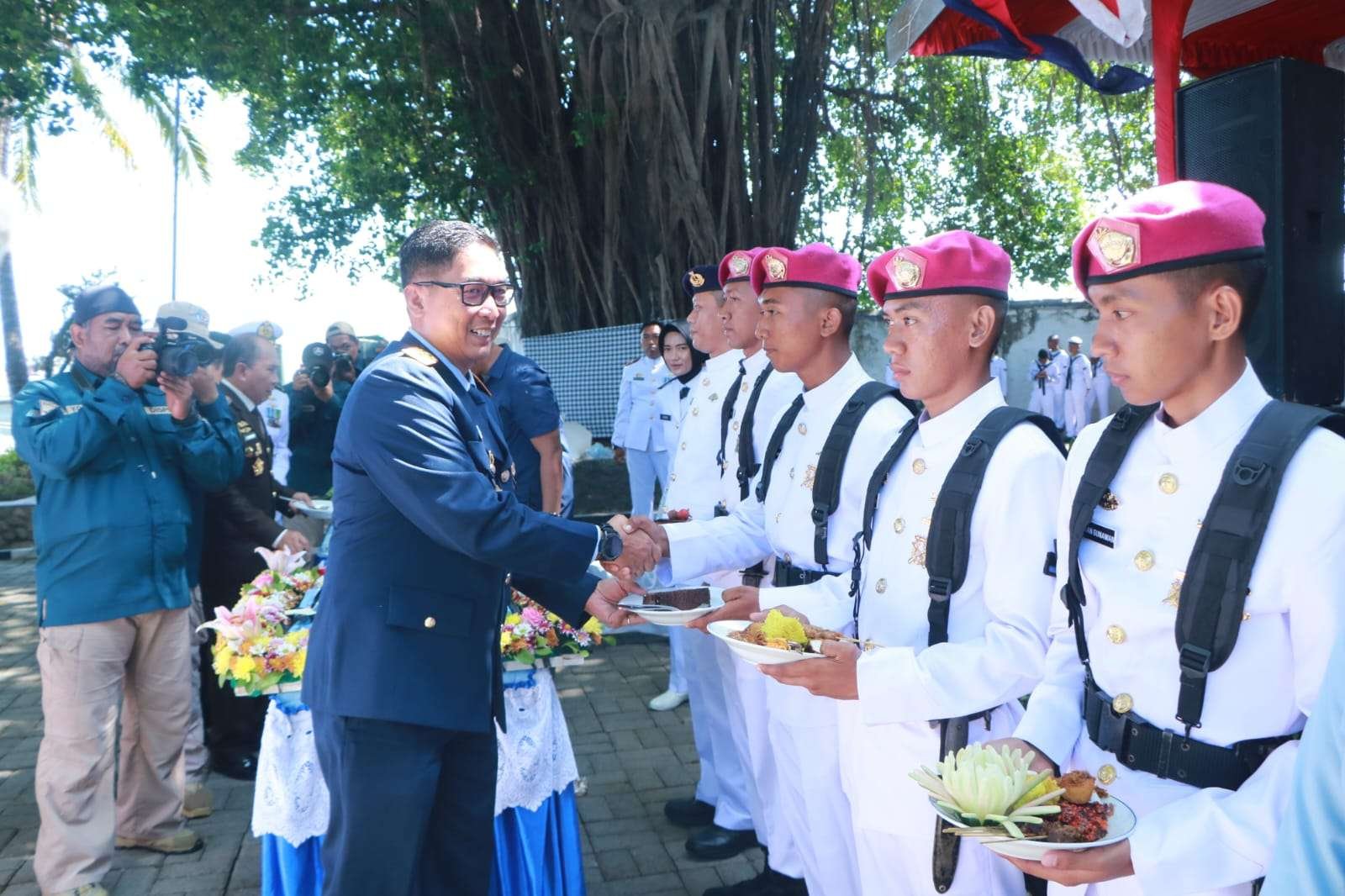 Upacara peringatan Hari Ulang Tahun Ke-79 TNI AL dipimpin langsung oleh Komandan Lantamal (Danlantamal) IV Makassar, Brigjen TNI (Mar) Andi Rahmat M. Panglima TNI Jenderal TNI Agus Subiyanto dalam sambutan tertulisnya yang dibacakan Brigjen TNI (Mar) Andi Rahmat menyampaikan apresiasi dan penghargaan yang tinggi kepada seluruh prajurit TNI Angkatan Laut atas profesionalitas, dedikasi, dan militansinya. “Rakyat dan bangsa Indonesia bangga memiliki Angkatan Laut yang profesional dan modern sebagai penjaga kedaulatan bangsa dan keutuhan wilayah Negara Kesatuan Republik Indonesia serta pelindung bangsa Indonesia dari segala ancaman dan gangguan khususnya di wilayah laut Indonesia,” ujar Panglima TNI.