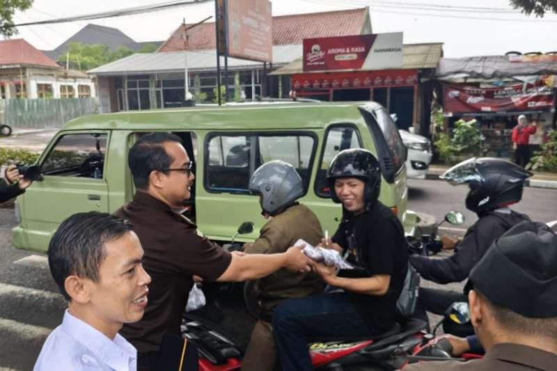 Kegiatan tersebut dilakukan jajaran Kejari Cianjur kepada warga pengguna jalan yang melintas depan kantor Kejari Cianjur di Jalan KH. Abdulah bin Nuh Desa Nagrak Kecamatan Cianjur, Senin 09 Desember 2024.