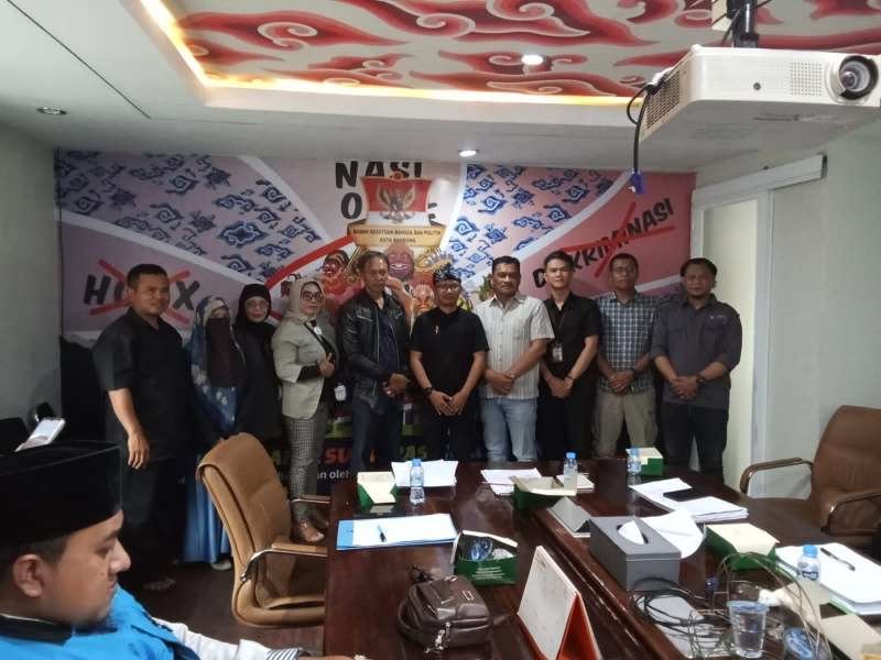Usai melaksanakan tatap muka, Ketua DPC KKJN Kota Bandung, Iwan Mulyana yang didampingi Sekretaris, Imas Masriah, S.Sos., Bidang Humas, Dewi Apriatin, Bidang Pendidikan dan Latihan, Solehadin, S.Pd menyampaikan beberapa hal hasil dari pertemuan dengan Kepala Badan Kesatuan Bangsa dan Politik Kota Bandung.