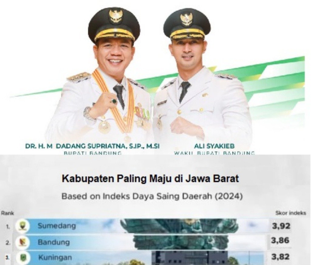 Bupati Bandung Dadang Supriatna menyatakan, keberhasilan Kabupaten Bandung meraih skor IDSD 3,86 dan masuk dalam jajaran 10 besar nasional dan 3 besar di Jawa Barat menjadi bukti nyata komitmen Pemkab Bandung dalam meningkatkan daya saing daerah sehingga menjadi daerah yang maju.