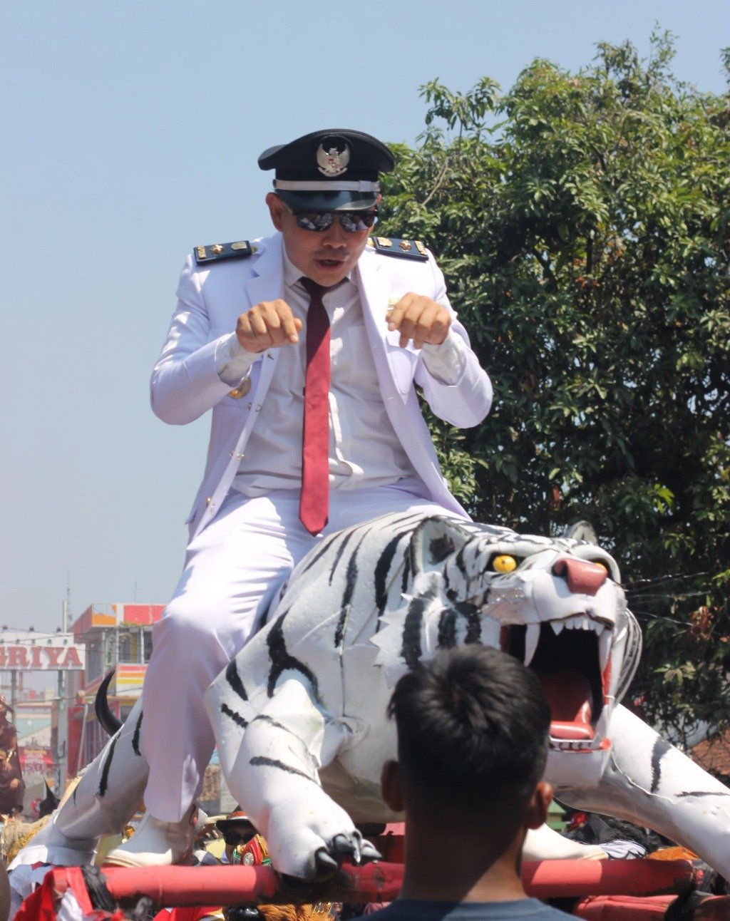 Usah selesai mengikuti upacara H. Pipin Kusnendi pun di sambut warga masyarakat dan di hadapan Forkopimcam di podium penilaian, H. Pipin sebagai Kepala Desa Neglasari langsung menaiki Patung Sisingaan dan diarak pasukan warganya dengan semangat kemerdekaan.