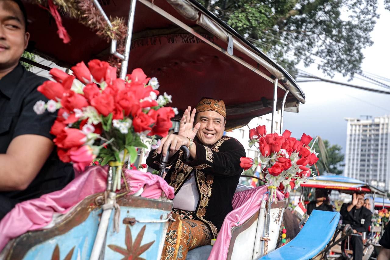 Ribuan masyarakat memadati sepanjang rute kirab yang menampilkan ragam seni, budaya, hingga atraksi kuda dan kereta kencana dari 27 kota dan kabupaten di Jawa Barat.
