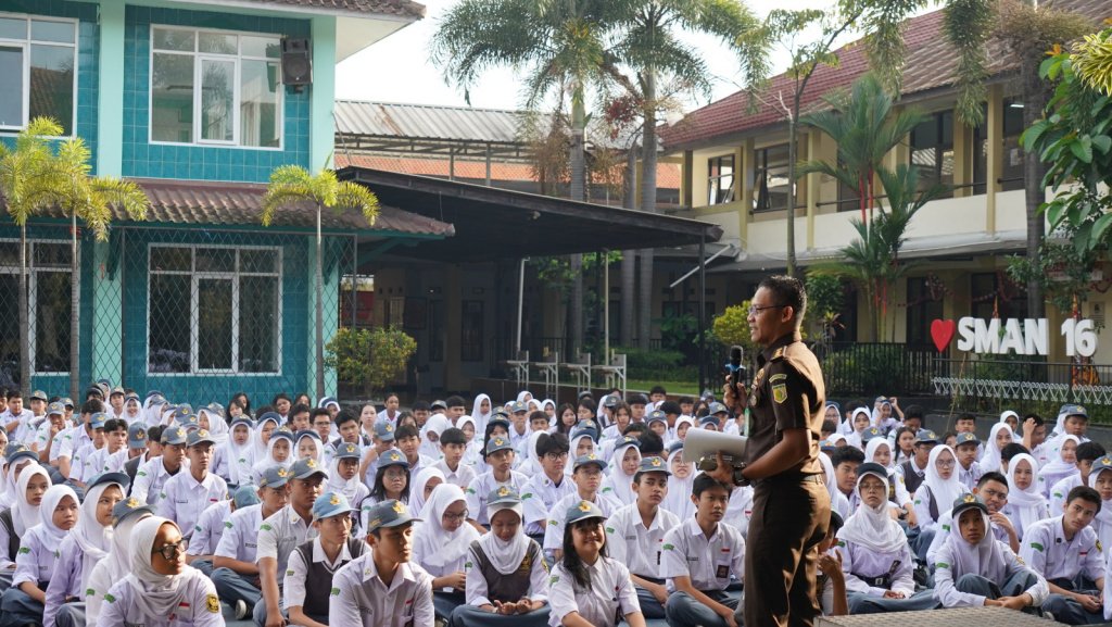 Kota Bandung, Idisi Online – Kejaksaan Tinggi Jawa Barat melaksanakan kegiatan Penyuluhan Hukum Jaksa Masuk Sekolah (JMS) bertempat di SMAN 16 Kota Bandung, Kegiatan tersebut dipimpin langsung oleh Kepala Seksi Penerangan Hukum Kejati Jabar Nur Sricahyawijaya, S.H.,M.H. dengan membawa materi “Bullying” (17/09/25)