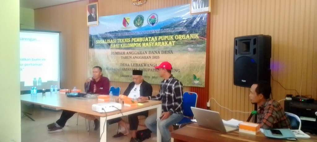 Kab Bandung, Idisi Online – Pemerintah Desa Lebakwangi, Kecamatan Arjasari, Kabupaten Bandung, mengadakan sosialisasi tentang penggunaan pupuk organik kepada para kelompok tani di Aula Desa Lebakwangi pada Sabtu, 27 September 2025.