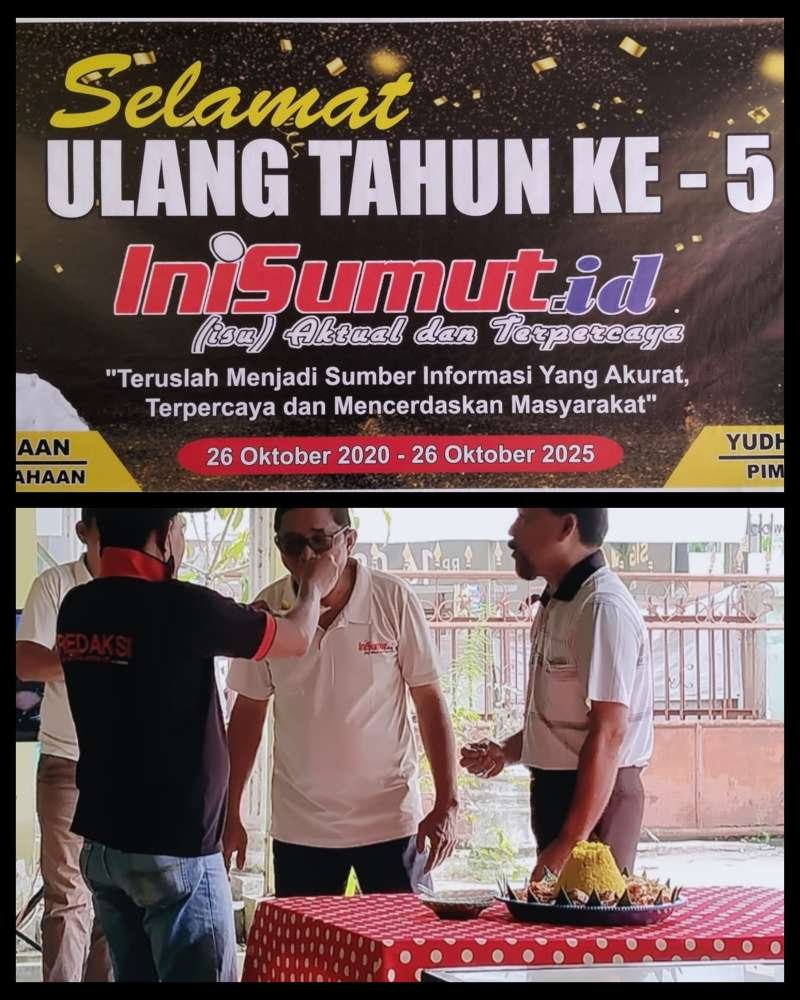 Sementara Pimpinan Perusahaan Ridwan Siahaan yang juga mewakili Pimpinan Redaksi H.T. Yudhistira Nugraha, M.I.Kom., menyampaikan bahwa keberlangsungan Inisumut.id hingga usia lima tahun merupakan hasil kerja keras seluruh jajaran staf dan redaksi.