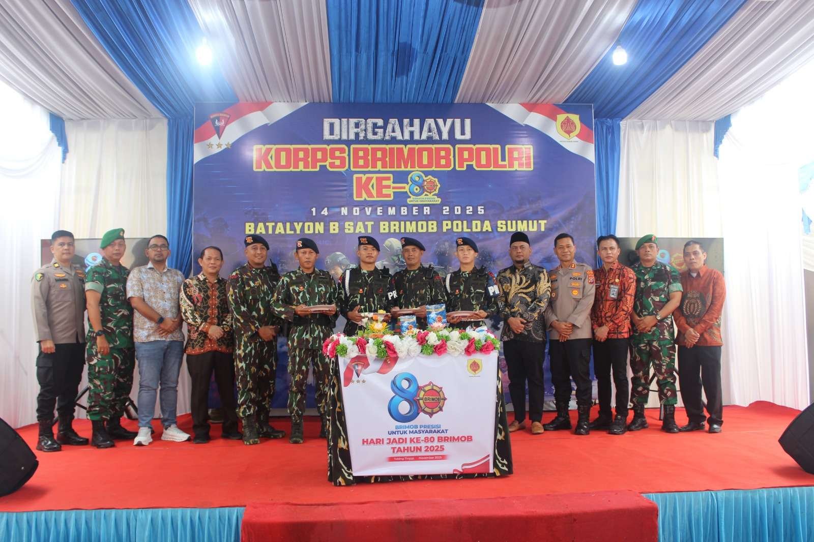 Tebingtinggi,idisionline.Com-Jajaran Batalyon B Sat Brimob Polda Sumatera Utara menggelar syukuran sekaligus silaturahmi dalam rangka memperingati Hari Ulang Tahun ke-80 Korps Brimob Polri,Sabtu (15/11/2025).di halaman mako Brimob Ksatria Paino S.K.Batalyon B Tebingtinggi, berada di Jalan Ahmad Yani, kota tebingtinggi.