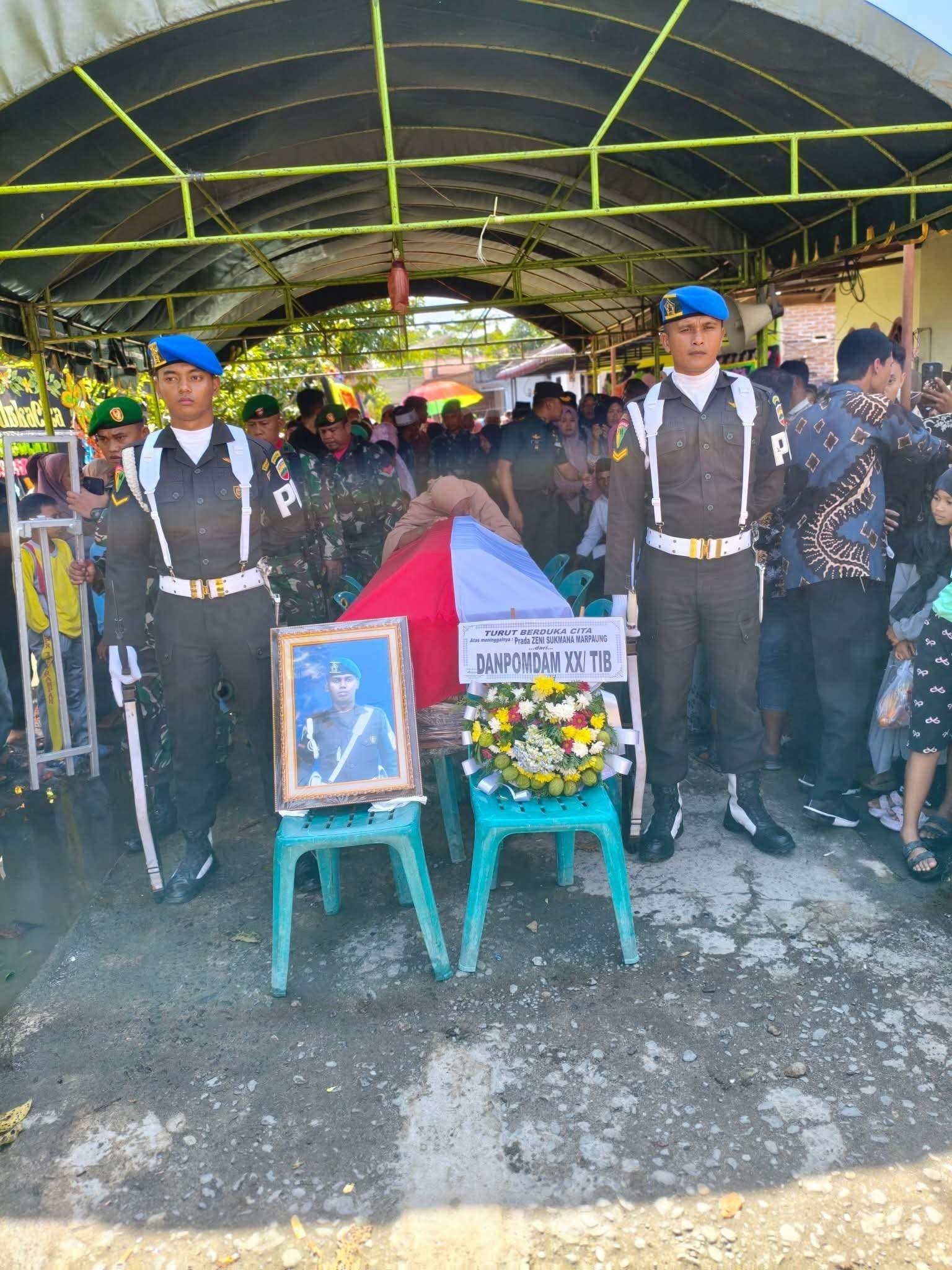 SerdangBedagai, idisionline.com – Jenazah almarhum Pratu Anumerta Zeni Sukmana Marpaung (24) yang gugur saat bertugas mengevakuasi korban longsor di Padang Panjang, Sumatera Barat tiba dirumah duka di Dusun ll Kampung Keling, Desa Sei Rampah, Kabupaten Serdang Bedagai (Sergai), Sumatera Utara. Sabtu (29/11/2025) sekitar pukul 13.30 WIB.