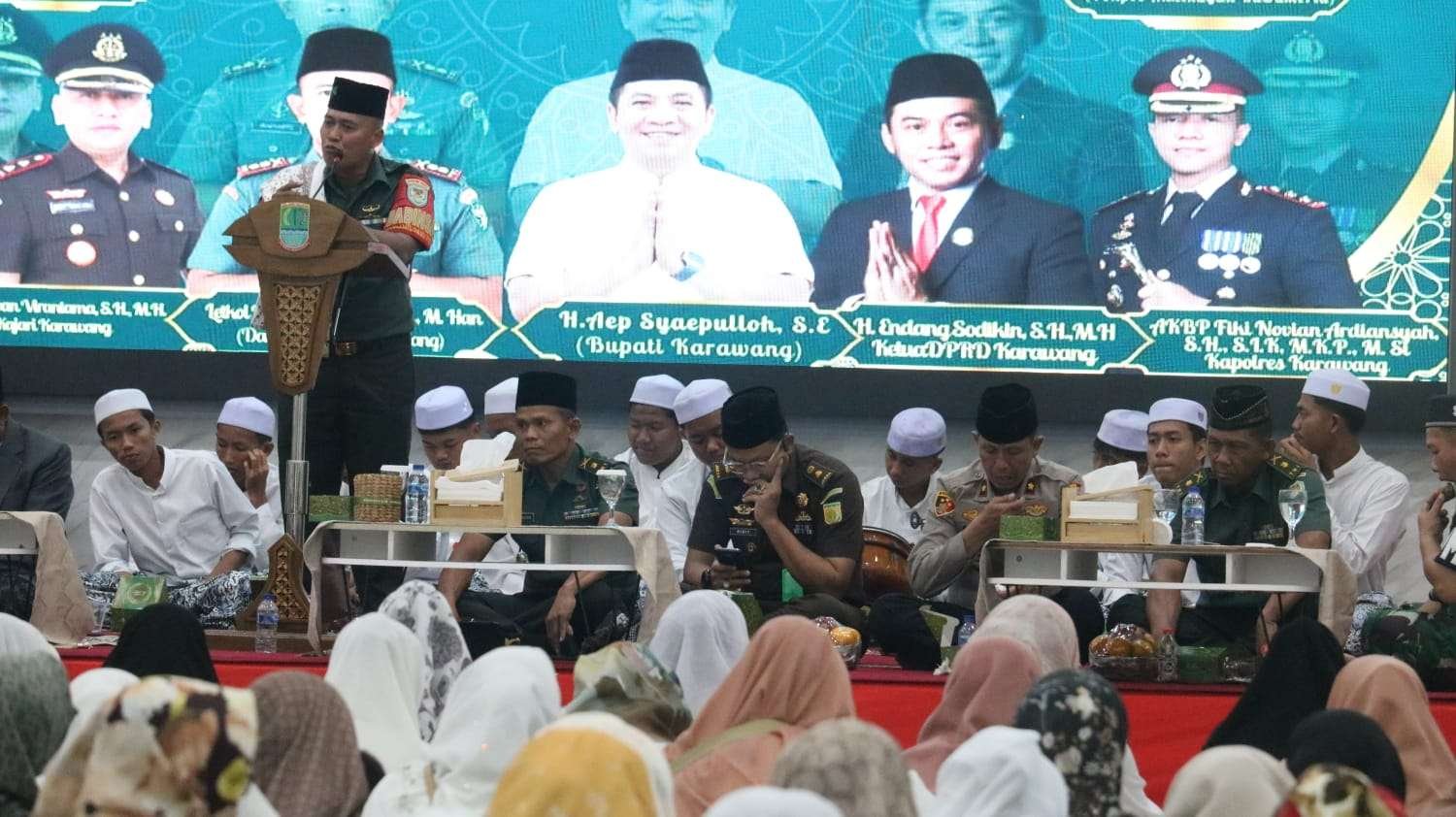 Kegiatan bertujuan untuk meningkatkan keimanan serta memohon keselamatan dan perlindungan bagi bangsa dan Negara Kesatuan Republik Indonesia (NKRI), acara sakral ini digelar di Aula Husi Hamid Pemda Karawang pada Selasa (2/12/25).