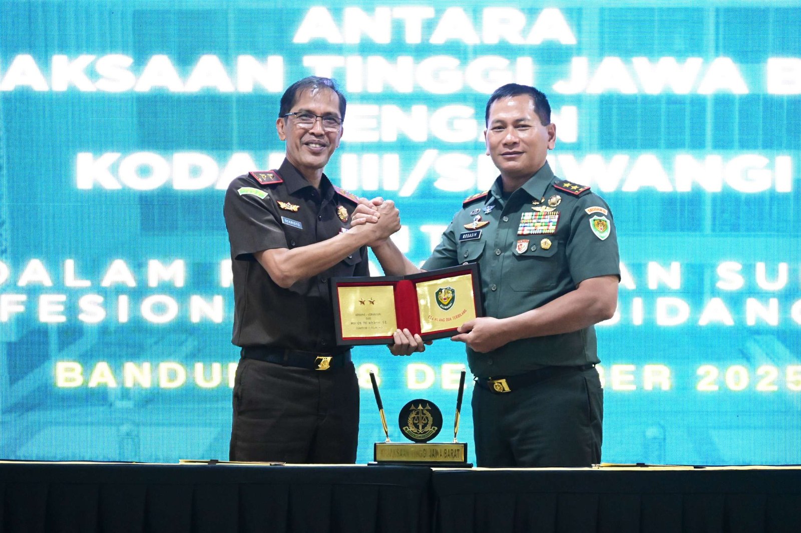 Kota Bandung, Idisi Online – Kajati Jabar Dr. Hermon Dekristo, S.H., M.H menandatangani Perjanjian Kerjasama antara Kejaksaan Tinggi Jawa Barat dengan Komando Daerah Militer III/Siliwangi yang di tandatangani oleh Panglima Kodam III/Siliwangi Mayor Jenderal TNI Kosasih, S.E. diselenggarakan di Aula R.Soeprapto Kejati Jabar (18/12/25).