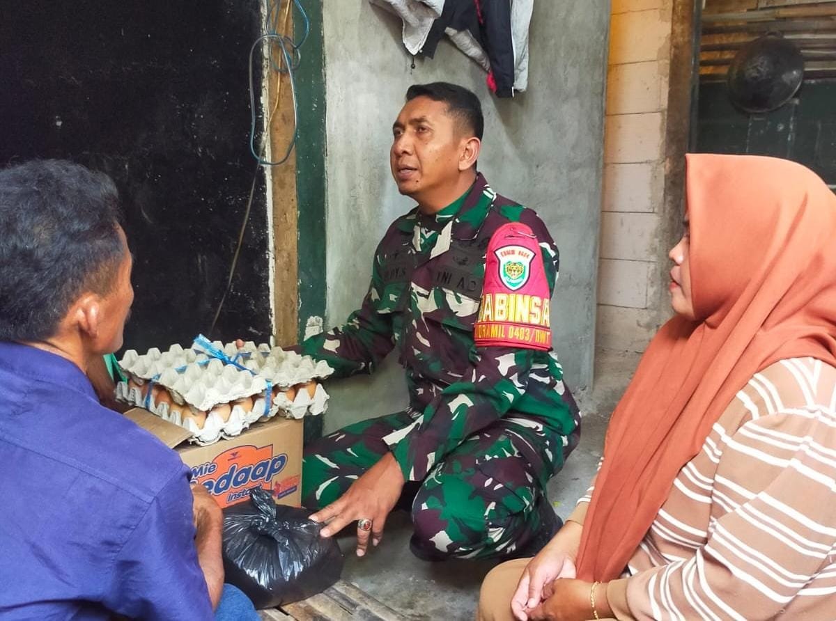 Dalam kunjungan tersebut, Babinsa Sertu Dedy Sartono turut menyerahkan bantuan pribadi berupa sembako, yakni telur, Beras dan mie instan.