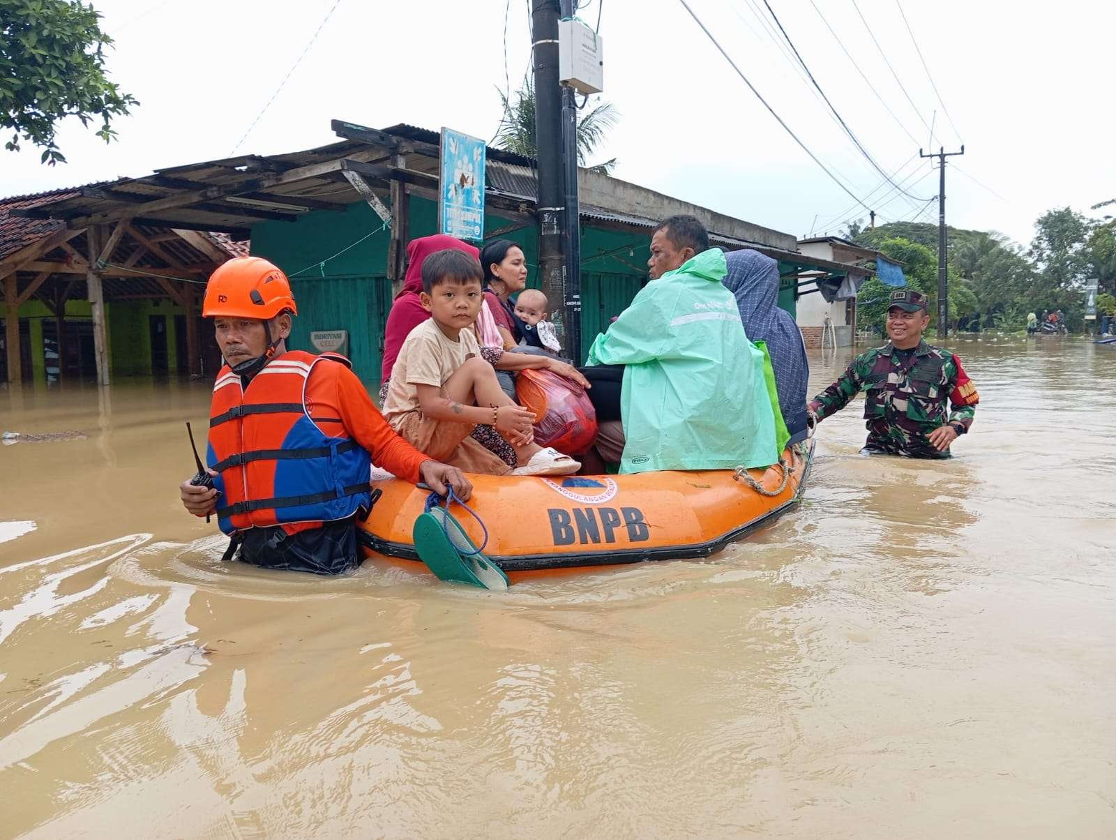 Selain mengevakuasi jiwa, personel TNI dan BPBD juga membantu warga mengamankan barang-barang berharga ke tempat yang lebih tinggi.