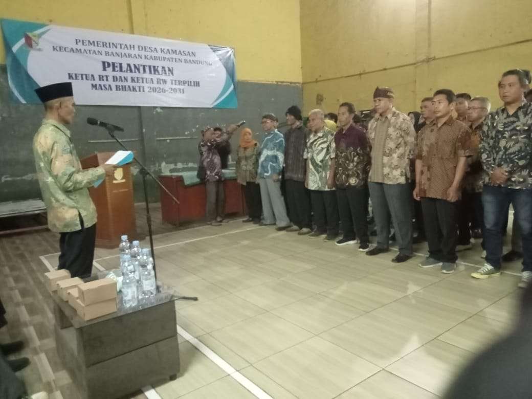 Kab. Bandung, Idisi Online – Pemerintah Desa kamasan melaksanakan Pelantikan bagi Ketua RT dan RW periode 2026-2031. Acara dilaksanakan di Aula Gedung serbaguna Desa. Pelantikan secara simbolis oleh kepala Desa Kamasan Mamat, Dalam kegiatan ini dihadiri oleh 87 Ketua RT dan 26 Ketua RW Se-Desa Kamasan. Kamis, 29/01/26.