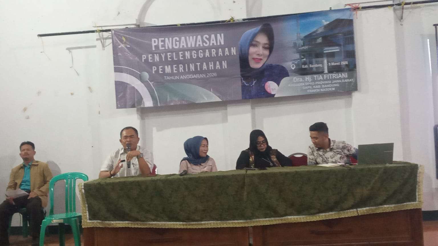 Kegiatan ini dihadiri oleh Forkopincam, Kades Jelegong Anen Ramdani, dan konstituen Dra. Hj. Tia, tamu undangan serta wartawan.