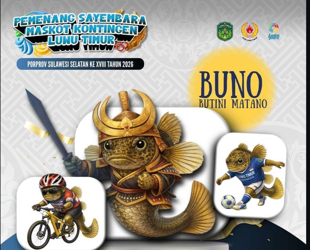 LUWU TIMUR, IO– Pengumuman pemenang Sayembara Maskot Kontingen Luwu Timur untuk ajang Pekan Olahraga Provinsi (Porprov) Sulawesi Selatan ke-XVIII Tahun 2026 tengah menjadi sorotan tajam di media sosial. Pasalnya, desain maskot yang dinobatkan sebagai Juara 1 diduga kuat merupakan hasil buatan kecerdasan buatan atau Artificial Intelligence (AI). Dugaan ini bermula dari unggahan akun Instagram resmi penyelenggara, @konilutimjuara (KONI Luwu Timur), yang mengumumkan karya pemenang sayembara tersebut. Berdasarkan unggahan itu, desain maskot bernama “BUNO BUTINI MATANO” karya Reza Vahlevy A.L berhasil keluar sebagai Juara 1. Maskot tersebut menampilkan karakter ikan endemik yang divisualisasikan dalam balutan baju zirah layaknya samurai, serta dua pose alternatif lainnya yakni sedang bersepeda dan bermain sepak bola.