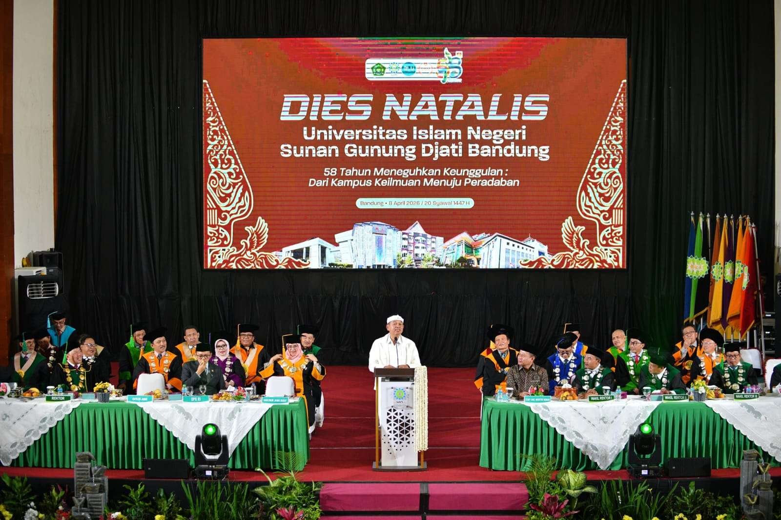 Hal tersebut disampaikannya dalam Sidang Senat Terbuka Dies Natalis ke-58 UIN Sunan Gunung Djati Bandung yang digelar di Gedung Aula Anwar Musaddad, Kota Bandung, Rabu (8/4/2026).