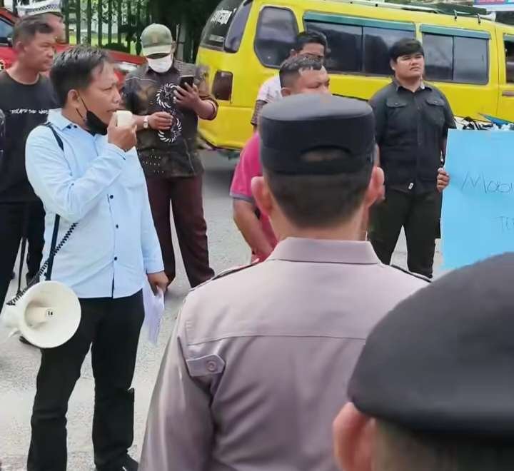 Massa TTB Demo di Polres Tebing Tinggi Desak Polisi Usut Dugaan Penyimpangan Anggaran Bappeda