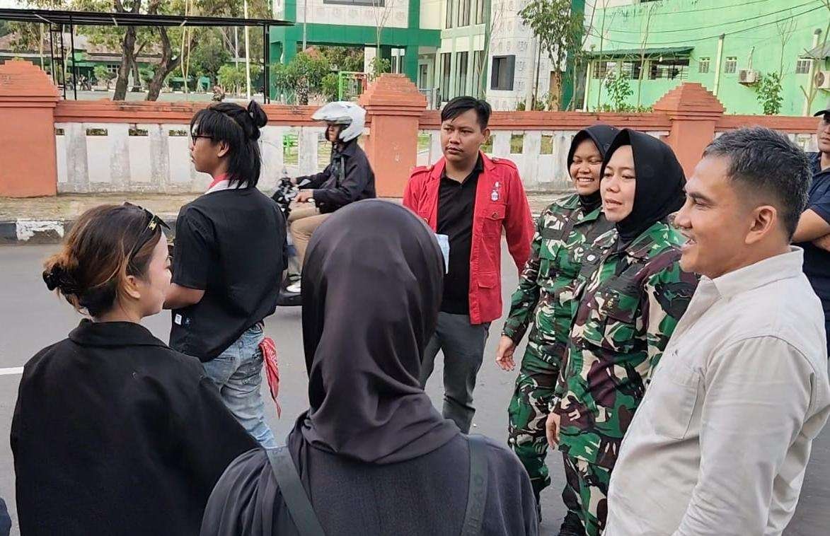 Di balik tuntutan aspirasi, terselip pemandangan yang menyejukkan. Dua srikandi TNI dari Kodim 0604/Karawang tampak turun langsung ke lapangan untuk menyapa para mahasiswa dengan pendekatan humanis.