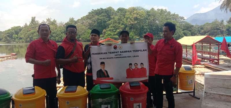 Warga setempat nampak antusias menerima bantuan serta penempatan alat kebersihan dan tong sampah di objek wisata Cangkuang.