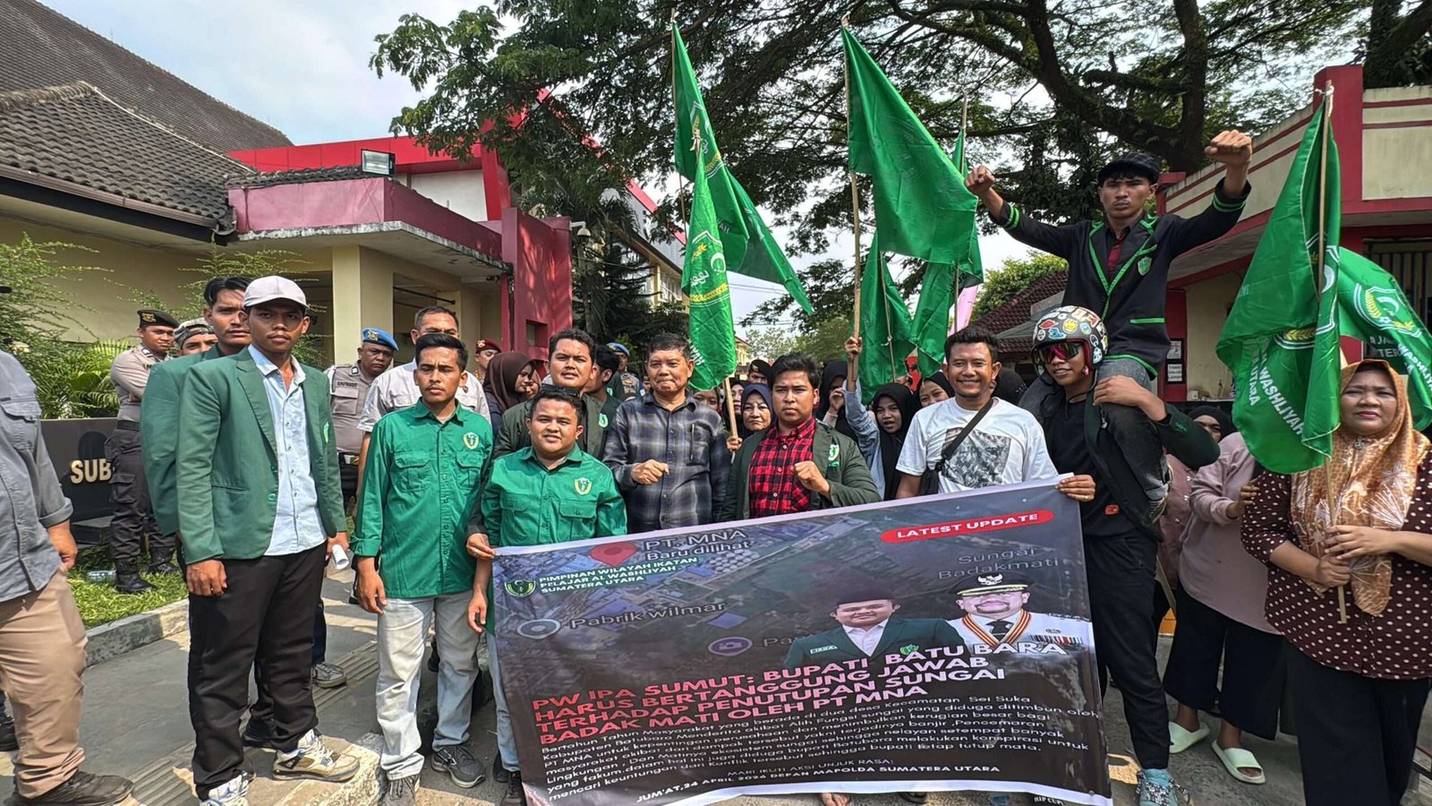 Medan, idisionline.com – Gelombang kritik terhadap dugaan perusakan lingkungan kembali mencuat di Sumatera Utara. Pimpinan Wilayah Ikatan Pelajar Al-Washliyah (PW IPA) Sumut menggelar aksi unjuk rasa di depan Mapolda Sumut, Jumat (24/04/2026), mendesak aparat penegak hukum segera mengusut dugaan penutupan Sungai Badak Mati di Kabupaten Batu Bara.