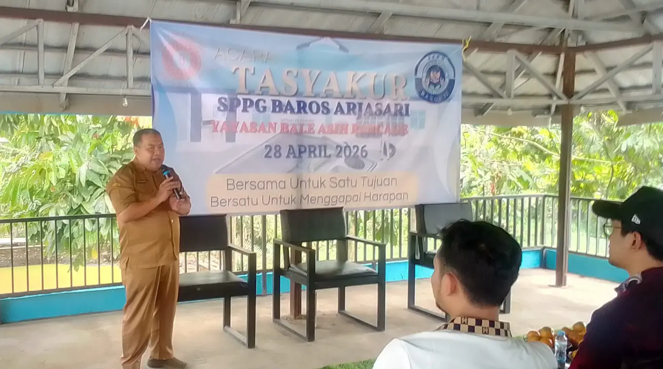 Perwakilan Yayasan Bale Asih Rancage, Riki Nugraha, mengucapkan terima kasih atas kehadiran seluruh tamu undangan. Ia berharap kehadiran SPPG Baros 2 dapat memberi manfaat nyata bagi peningkatan gizi masyarakat Desa Arjasari.