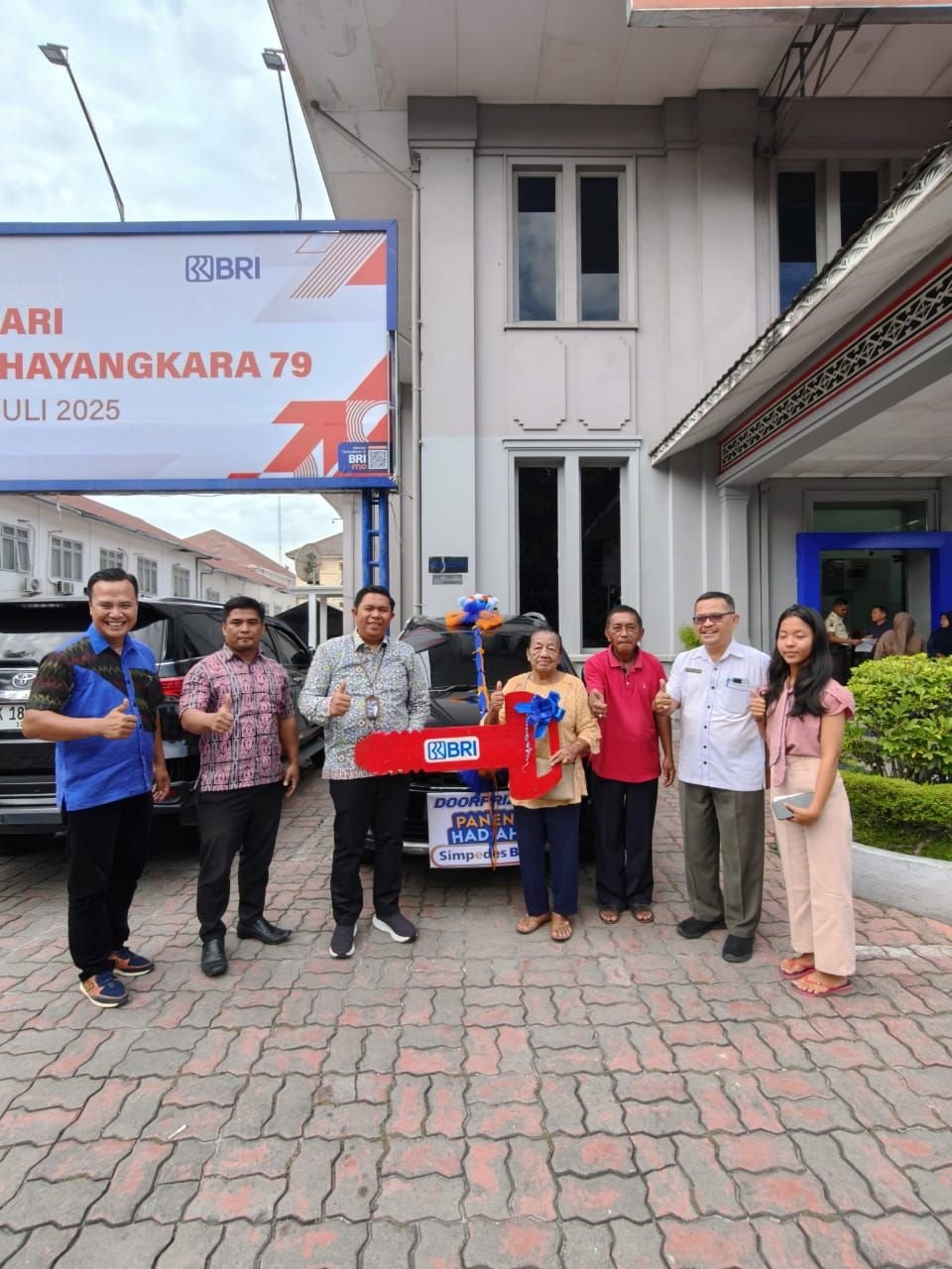 Pematang Siantar, Idisionline.com – Kebahagiaan luar biasa dirasakan oleh Ibu Sarinah Perangin-angin, seorang pensiunan Taspen, setelah dirinya berhasil meraih hadiah Grand Prize berupa satu unit mobil Suzuki XL-7 Zeta MT dari program Panen Hadiah Simpedes (PHS) Bank Rakyat Indonesia (BRI). Penyerahan hadiah dilakukan langsung oleh Pimpinan Cabang (Pinca) BRI Kantor Cabang Pematang Siantar, Bapak Yanri Eka Putra, pada Rabu, 2 Juli 2025 di halaman Kantor Kas Taspen BRI Jalan Merdeka, Pematang Siantar.