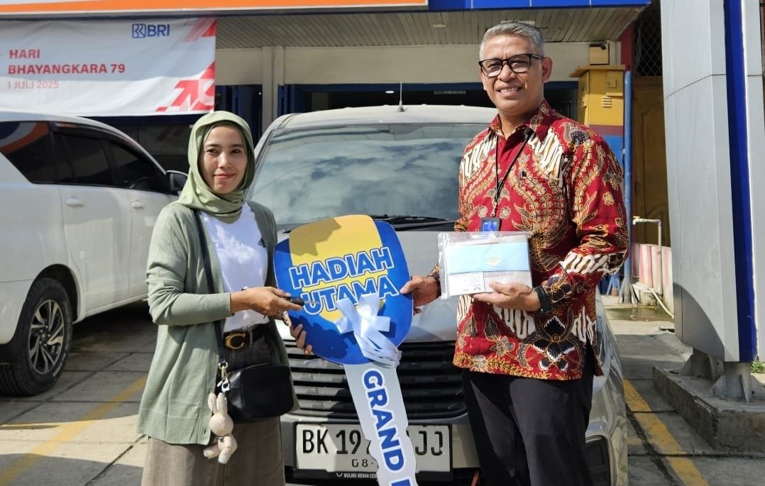 Simalungun,idisionline.com— Suasana penuh suka cita dan haru terpancar di halaman Kantor Cabang BRI Perdagangan, yang berlokasi di Jalan Rajamin Purba No. 07, Kabupaten Simalungun, Sumatera Utara. Pada hari ini, Rabu (2/7/2025), Indah Lestari, seorang nasabah dari Unit Kerja Kebun Kopi, secara resmi menerima hadiah satu unit mobil Wuling Formo 12 MB 8 Seat dari program Panen Hadiah Simpedes (PHS) BRI. Hadiah tersebut diserahkan langsung oleh Pemimpin Cabang BRI Perdagangan, Ferdinand Rynaldo Tahamata.