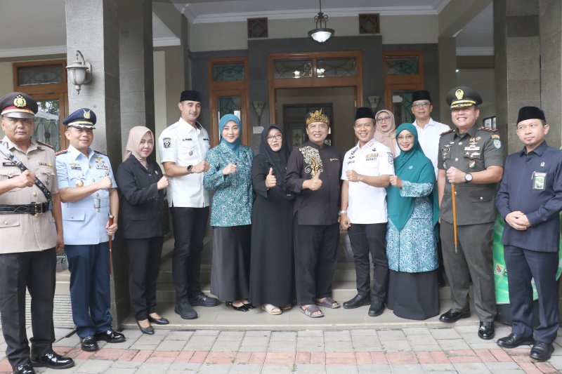 Pertemuan dua pemimpin di era-nya masing-masing itu, Dadang Supriatna didampingi Wakil Bupati Bandung Ali Syakieb saat mendatangi rumah mantan Bupati Bandung Dadang M. Naser di Jalan Raya Laswi Kecamatan Ciparay Kabupaten Bandung, Selasa (15//4/2025).