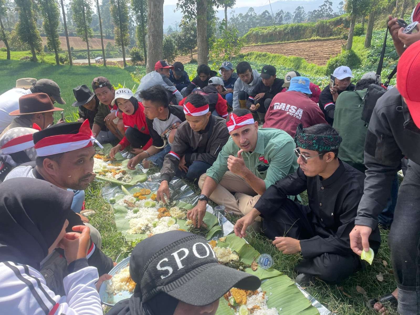 Kab Bandung, Idisi Online,- Calon Wakil Bupati Bandung, Ali Syakieb punya cara unik dan simpatik dalam merayakan HUT ke-79 Kemerdekaan RI. Digelar sangat sederhana di salah satu kebun pinggir sawah, Kampung Goha Lebak Desa Tarumajaya Kecamatan Kertasari Kabupaten Bandung, Sabtu (17/8/2024), Ali didaulat puluhan petani sebagai pemimpin upacara.