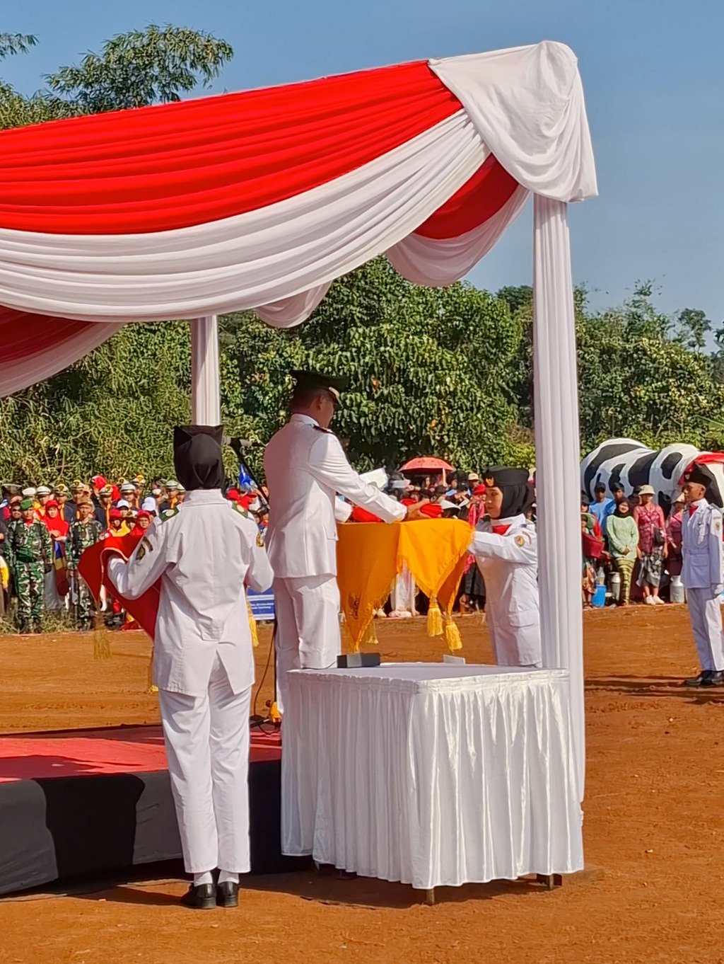 Camat Arjasari, Asep Hadian, S.Ag., M.Si., bertindak sebagai inspektur upacara, sementara Komandan Upacara dijabat oleh Serka Jajang dari Koramil Pameungpeuk. Saat membacakan teks proklamasi kemerdekaan Republik Indonesia, Asep Hadian menekankan pentingnya semangat kemerdekaan dalam membangun bangsa dan negara.