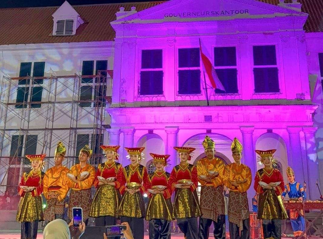 Lokasi bersejarah Museum Fatahillah menjadi saksi kemeriahan perayaan budaya dari berbagai daerah di seluruh Indonesia yang ditampilkan dengan penuh semangat.