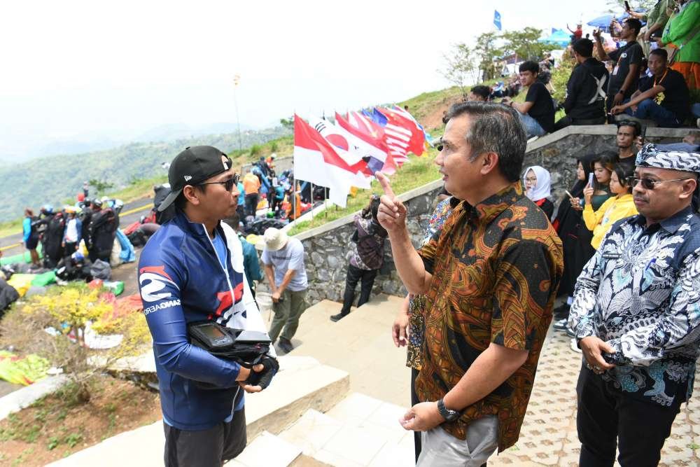 Kab. Sumedang, Idisi Online,- Penjabat Gubernur Jawa Barat Bey Machmudin menyaksikan West Java Paragliding Championship (WJPC) 2024 di kawasan Batu Dua, Kecamatan Cisitu, Kabupaten Sumedang, Rabu (2/10/2024).