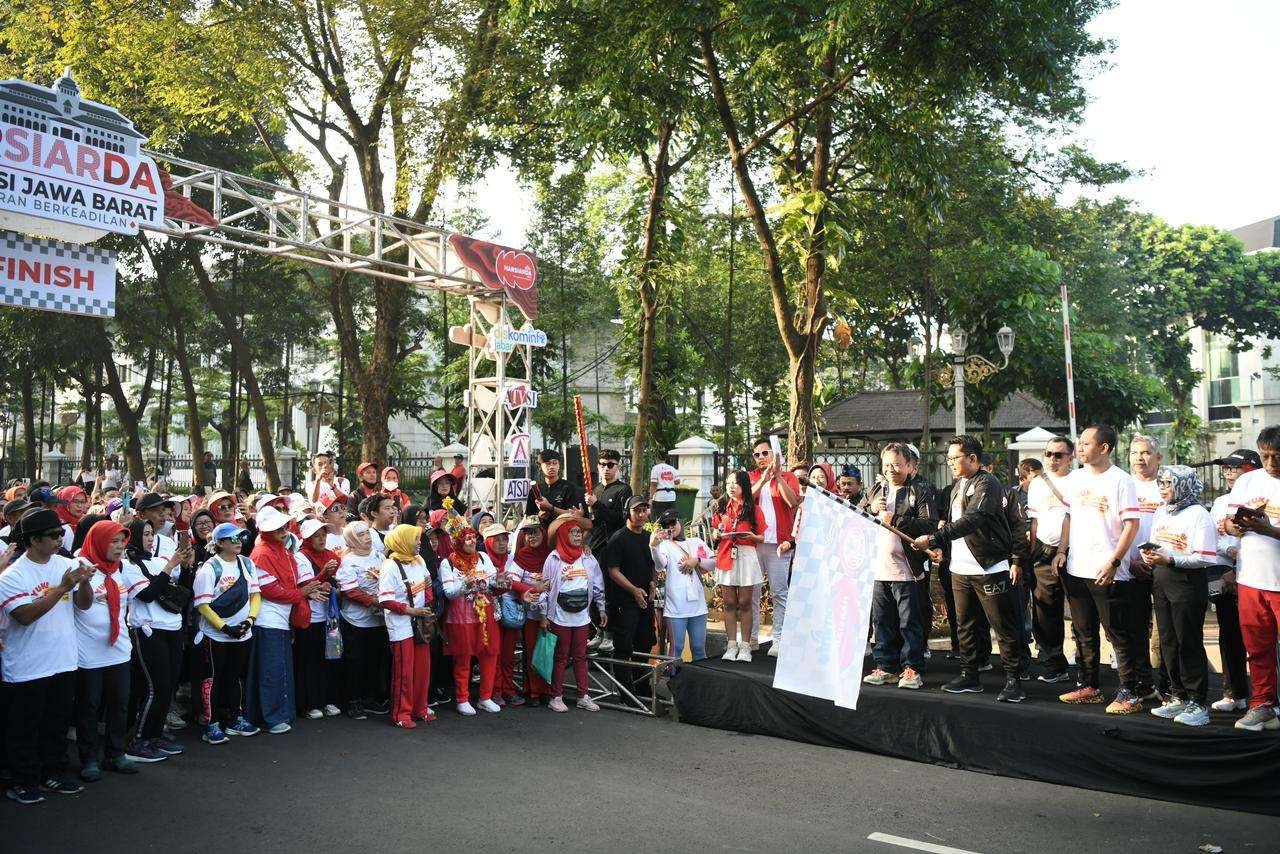 Diikuti oleh ribuan warga Bandung dan sekitarnya, jalan sehat yang digelar dalam rangka Hari Penyiaran Daerah (Harsiarda) 2024 ini dilepas oleh Sekda Jabar di halaman Gedung Sate, Kota Bandung, Minggu (9/6/2024).