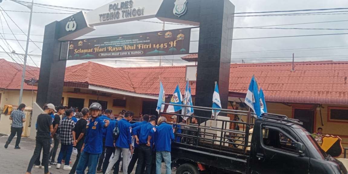Tebingtinggi, Idisi Online,- Aksi damai oleh massa Komite Nasional Pemuda Indonesia (KNPI) Kota Tebingtinggi, Sumatera Utara yang berjumlah sekitar 30 massa menggelar aksi demo di depan Mapolres Tebingtinggi, Polda Sumut, di Jalan Pahlawan Kecamatan Tebing Tinggi Kota, Kota Tebing Tinggi, Sumatera Utara. Jum’at, (03/04/2024) sekitar pukul 16.00 WIB.