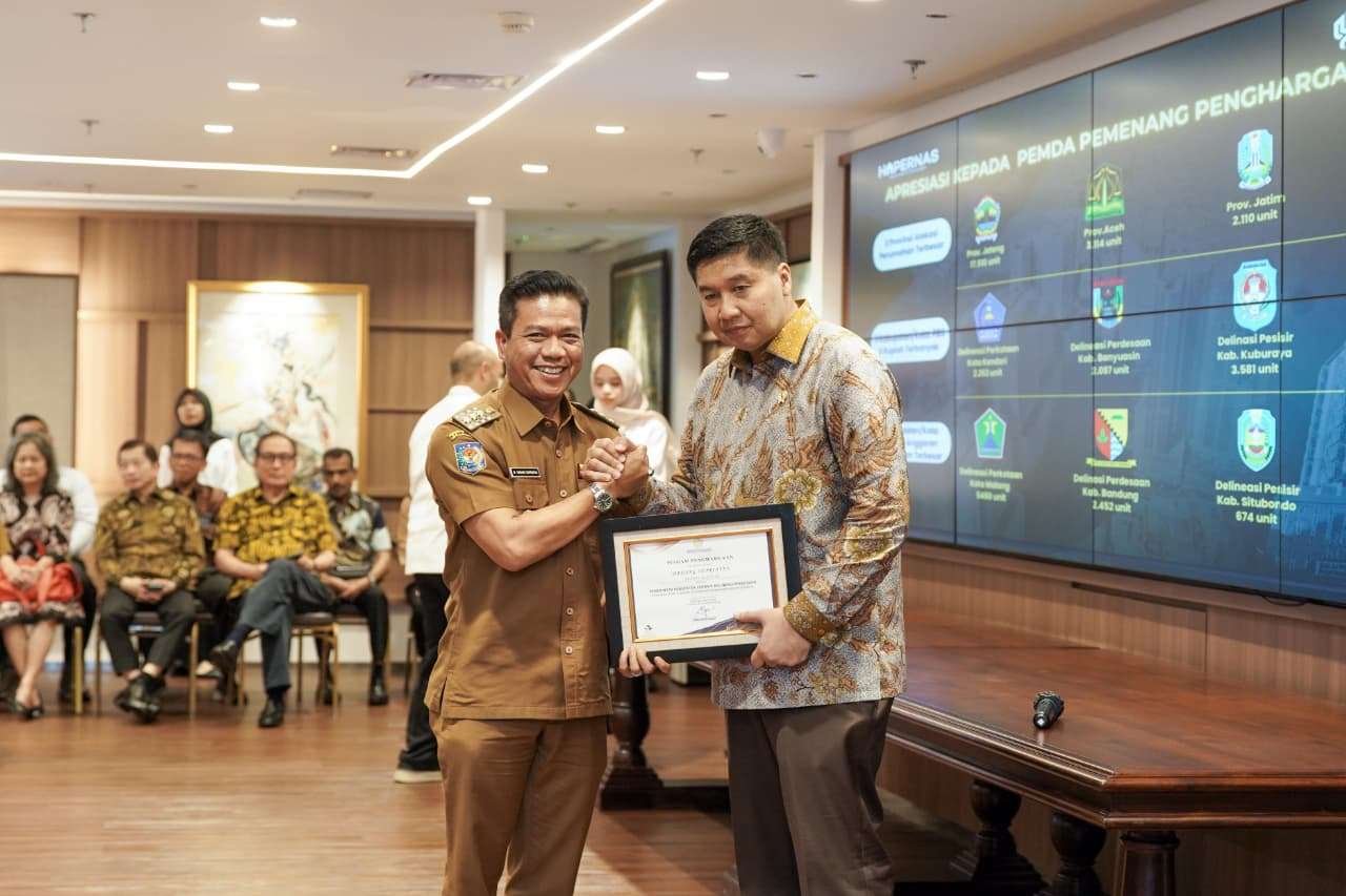 Penghargaan prestisius tersebut diserahkan langsung oleh Menpera Maruarar Sirait kepada Bupati Bandung Dadang Supriatna dalam acara peringatan Hari Perumahan Nasional (Hapernas) Tahun 2025 di Kantor Menpera Jln MH Thamrin Jakarta, Senin (25/8/2025) sore.