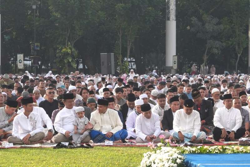 Gubernur Dedi Mulyadi juga menyampaikan pidato singkat dalam pelaksanaan salat Idulfitri tersebut.