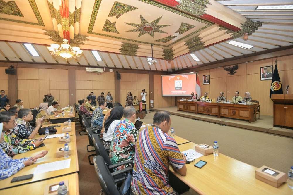 Kali ini, Pemda Daerah Istimewa Yogyakarta menjadi tempat tujuan belajar. Sekda Jabar Herman Suryatman memimpin rombongan studi banding, diterima Sekda Pemda Provinsi DIY Beny Suharsono di Ruang Rapat Lantai III Unit VIII Gedung Wisanggeni, Kompleks Kepatihan, Danurejan, Yogyakarta, Senin (7/10/2024).