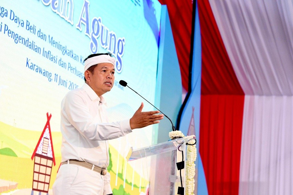 Hal itu dikatakan KDM sapaan Gubernur Dedi saat memberikan sambutan dalam acara High Level Meeting (Pasamoan Agung) Tim Pengendalian Inflasi Daerah dan Tim Percepatan dan Perluasan Digitalisasi Daerah se-Jawa Barat di Kantor Disparbud Kabupaten Karawang, Rabu (11/6/2025).