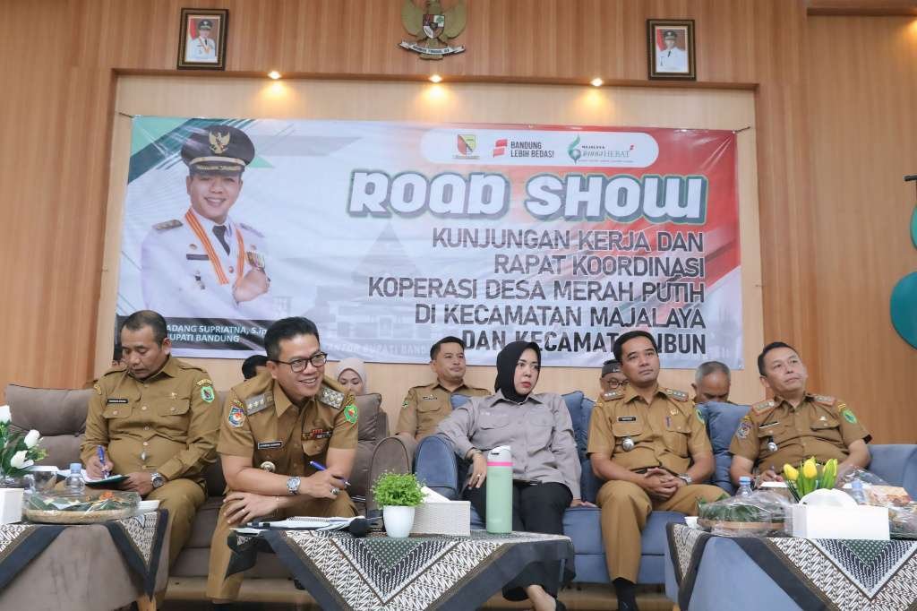Roadshow dalam rangka kunjungan kerja dan rapat koordinasi Koperasi Merah Putih (KMP) itu digelar di Aula Kecamatan Majalaya. Para Kepala Desa, Ketua Badan Permusyawaratan Desa (BPD), Ketua Koperasi Desa Merah Putih (KDMP), Ketua BUMDes asal Kecamatan Majalaya dan Kecamatan Ibun hadir pada pelaksanaan Roadshow Bupati Dadang Supriatna itu.