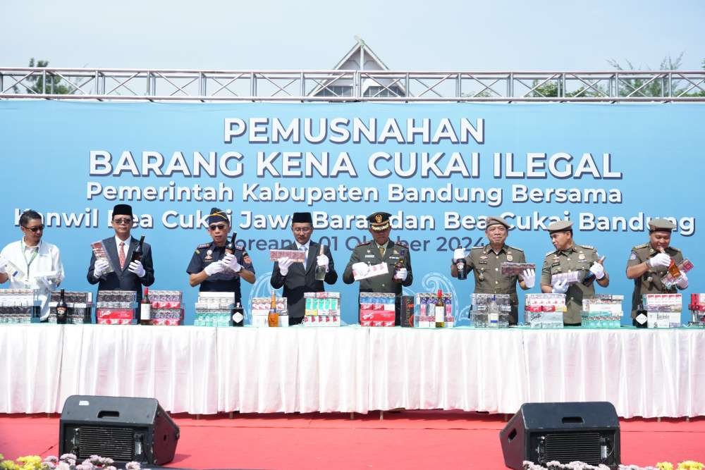 Pemusnahan rokok ilegal dan minuman mengandung etil alkohol ilegal itu dilakukan oleh Pjs. Bupati Bandung Dikky Achmad Sidik, Kepala Kantor Bea Cukai Bandung Budi Santoso, Kepala Satpol PP Kabupaten Bandung Moch Usman dan jajaran Satpol PP Bandung Raya, yaitu Satpol PP Kota Bandung dan Kota Cimahi serta jajaran TNI, Polri dan pihak lainnya.