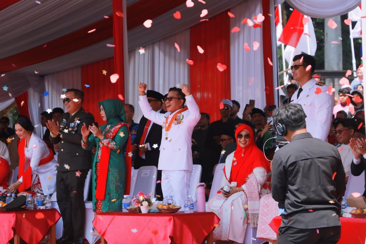 Kab Bandung, Idisi Online – Bupati Bandung Dadang Supriatna menjadi inspektur upacara peringatan HUT ke-80 Proklamasi Kemerdekaan RI, di Lapang Upakarti Soreang, Minggu 17 Agustus 2025.