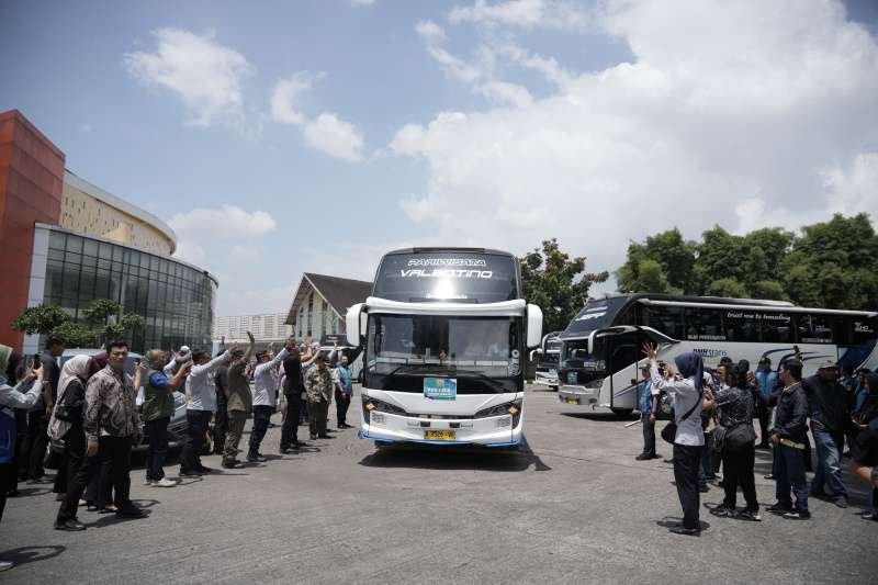 Ratusan peserta mudik gratis itu dengan memberangkatkan 14 bus armada tujuan Kota Surakarta atau Solo dan Yogyakarta.