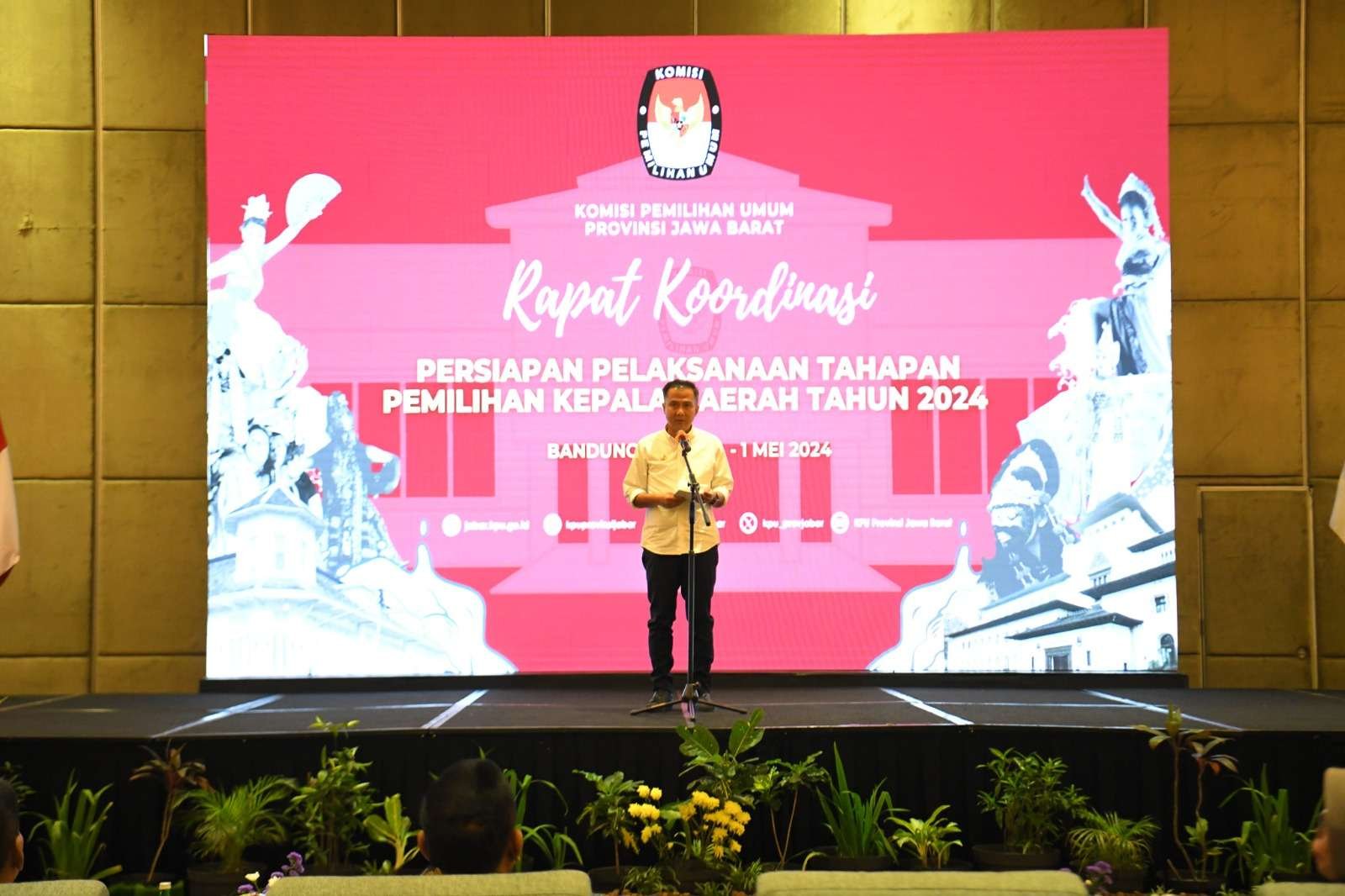KOTA BANDUNG, Idisi Online,- Penjabat Gubernur Jawa Barat Bey Machmudin menjadi narasumber dalam Rapat Pelaksanaan Tahapan Pemilihan Kepala Daerah (Pilkada) di Jabar Tahun 2024 bersama KPU Jabar di Hotel Harris, Kota Bandung, Selasa (30/4/2024).