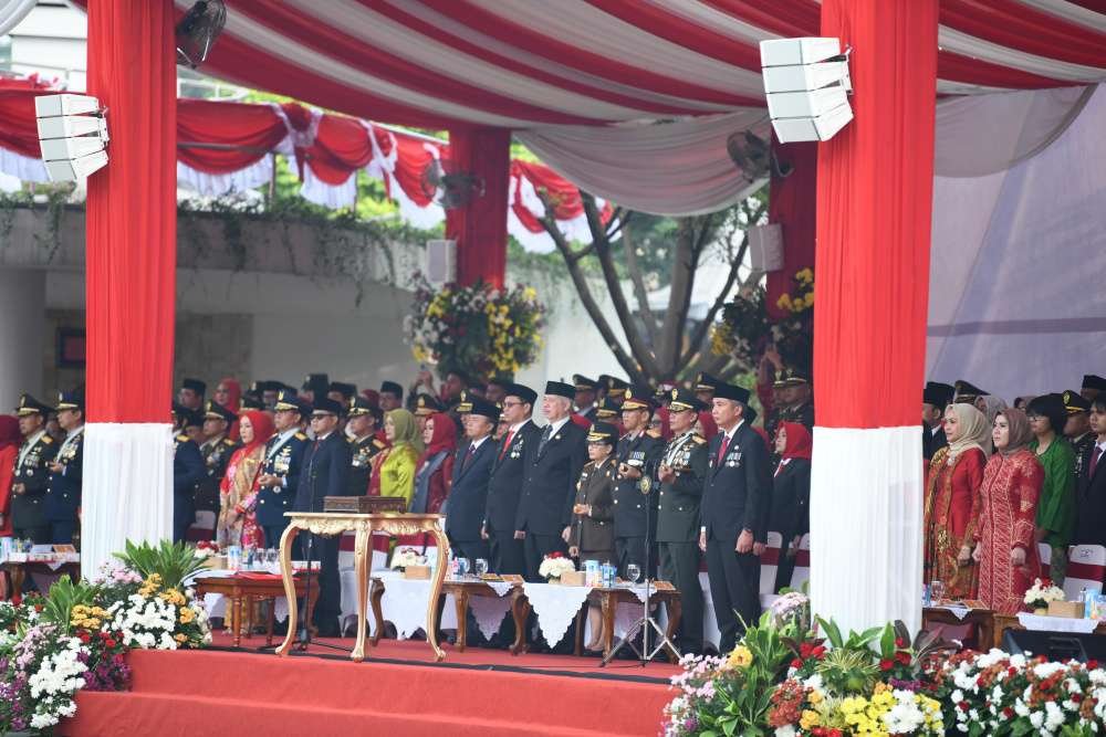 Pj Gubernur Jawa Barat Bey Machmudin menjadi inspektur upacara pengibaran Bendera Negara Sang Merah Putih dalam rangka peringatan HUT Ke-79 Kemerdekaan Republik Indonesia Tahun 2024 tingkat Provinsi Jawa Barat di Lapangan Gasibu, Kota Bandung, Sabtu (17/8/2024).(Foto: Biro Adpim Jabar)
