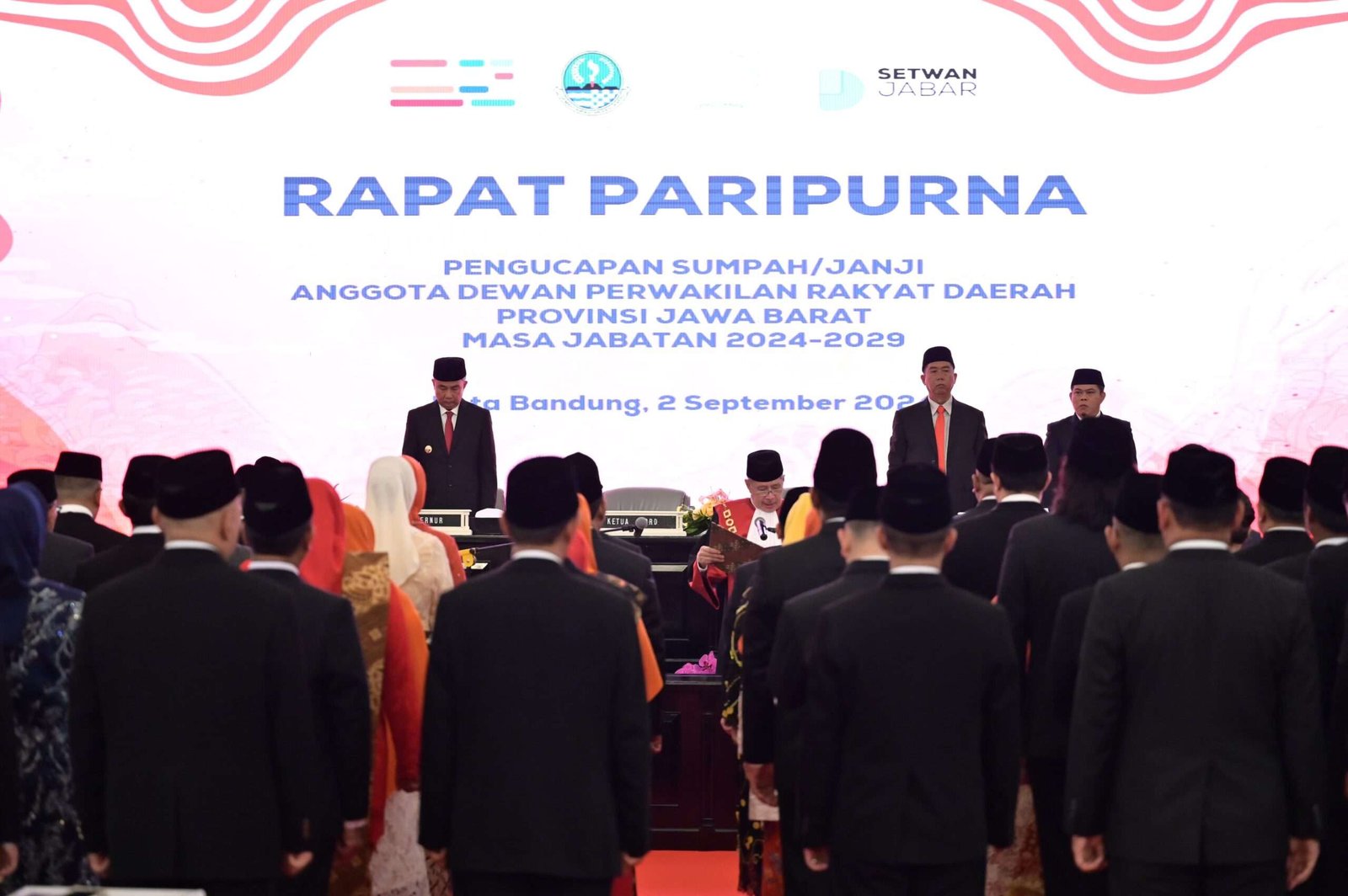 Kota Bandung, Idisi Online,- DPRD Jawa Barat menggelar Rapat Paripurna pengucapan sumpah/janji Anggota DPRD Provinsi Jawa Barat masa jabatan 2024-2029, sekaligus Peresmian Pemberhentian Pimpinan dan Anggota DPRD Provinsi Jawa Barat periode 2019-2024 di Gedung Merdeka, Kota Bandung.
