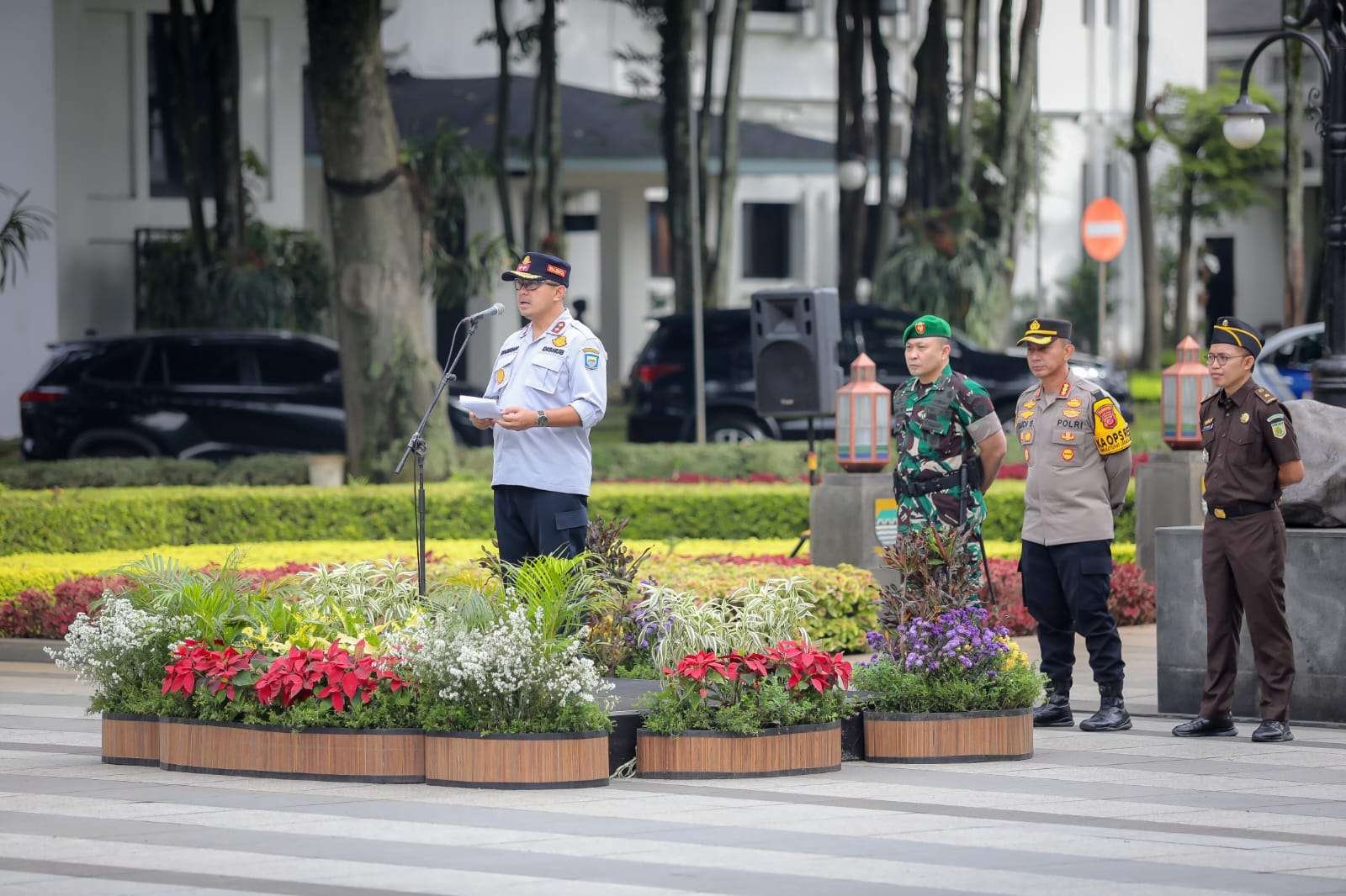 Apel kesiapsiagaan ini dihadiri oleh jajaran Forkopimda Kota Bandung, termasuk Wakil Wali Kota Bandung, Kapolrestabes Bandung, Dandim 0618/BS, serta perwakilan dari berbagai instansi terkait.